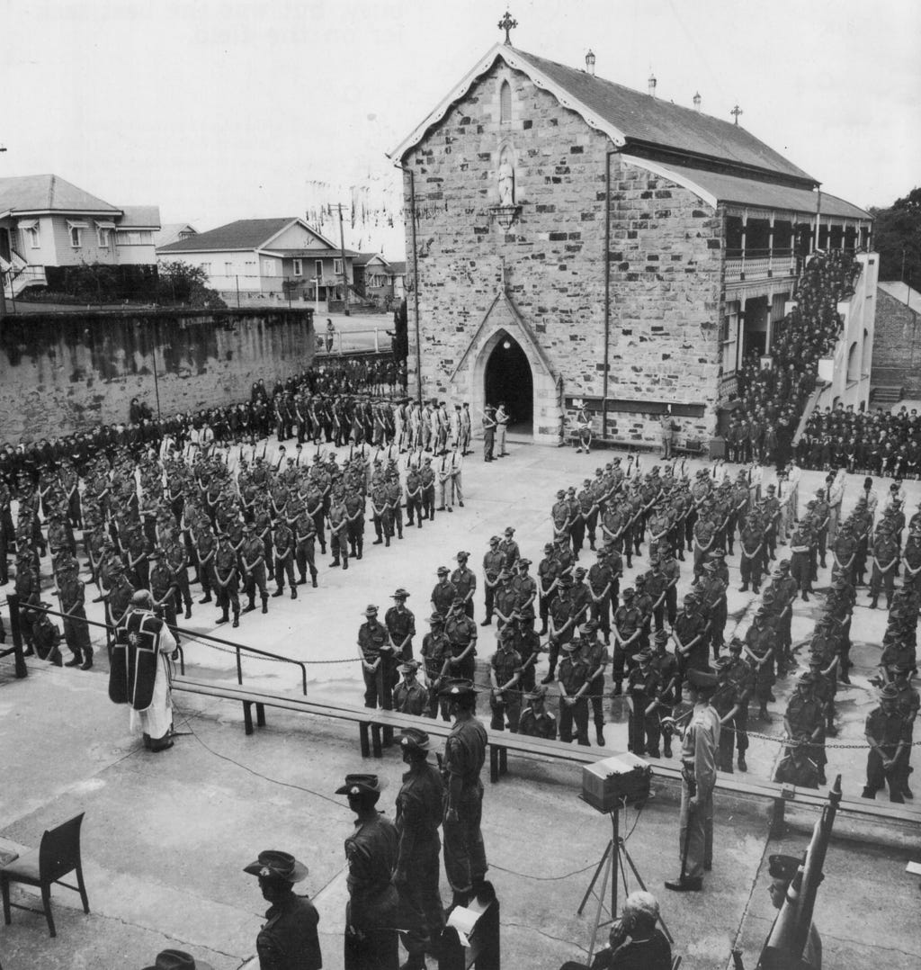 I say “shanghaied”, because I was given no choice: the cadets were compulsory at St Joseph’s College, Gregory Terrace, Brisbane … unless you were medically unfit.
